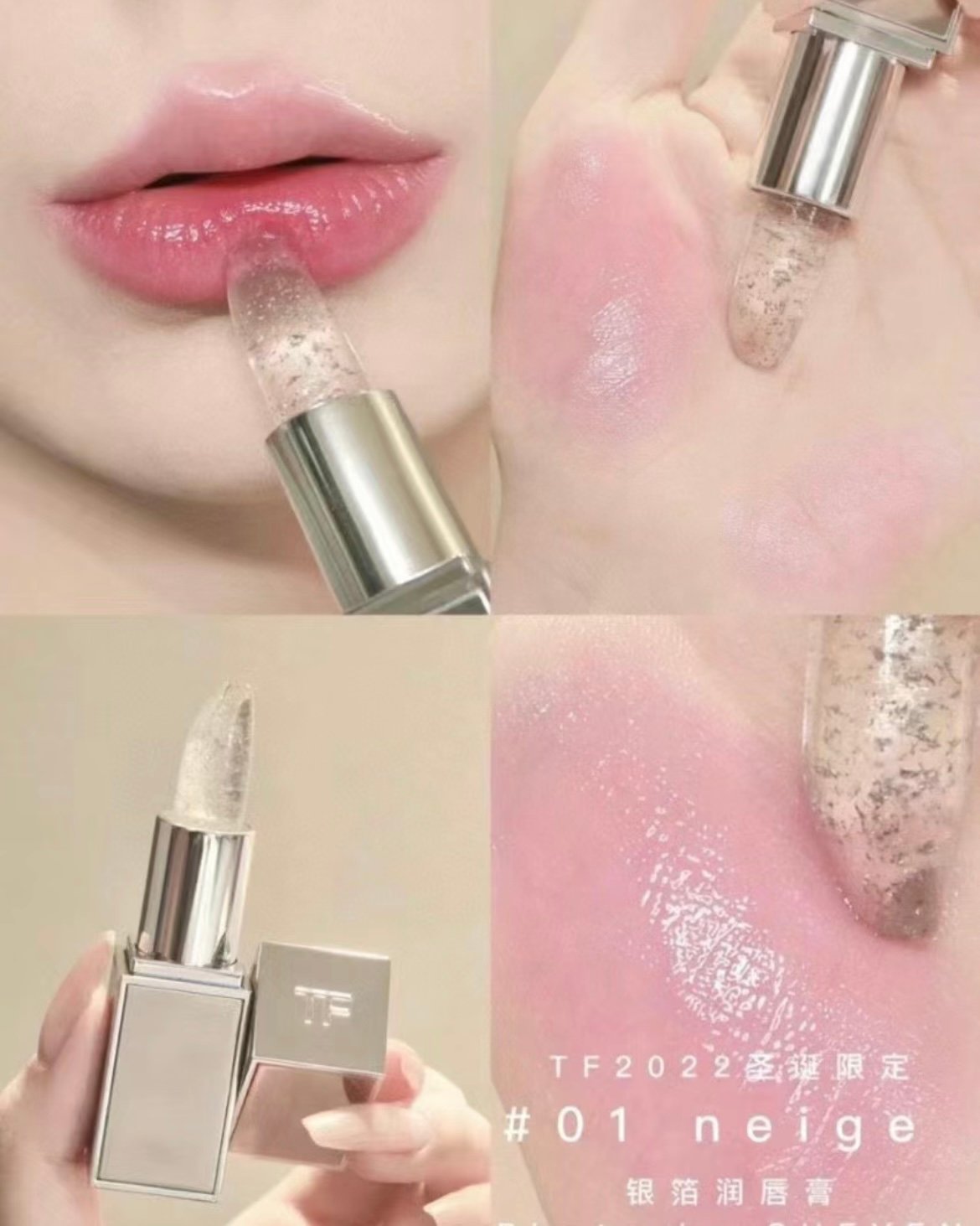 Skincare Tom Ford Snow Silver T Shimmer Lipstick & Tom Ford Gold Tube 24K Gold Foil Color-Changing Lip Balm #AL-S230